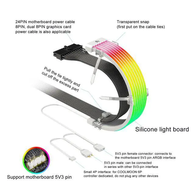 - Can be used to decorate the graphics card power cable, motherboard power cable or as a chassis light board