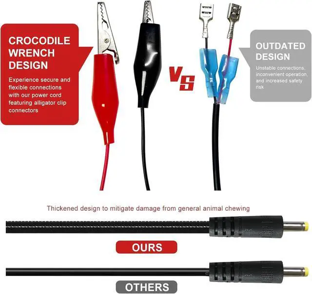 Experience reliable power for your trail cameras with our 2-pack of chew-resistant cables. Each 79-inch cable features a robust metal armor cover and waterproof, UV-resistant design for durability in outdoor conditions. Compatible with a wide range of trail cameras, these cables support up to 1.46A current and withstand up to 300V. Protect your camera's power connection from pets and rodents with our durable, long-lasting solution.