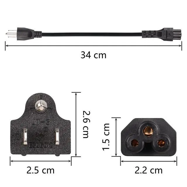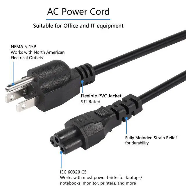 Compatibility: Universal 3-prong Mickey Mouse cable works with all 3-prong laptop AC adapters.