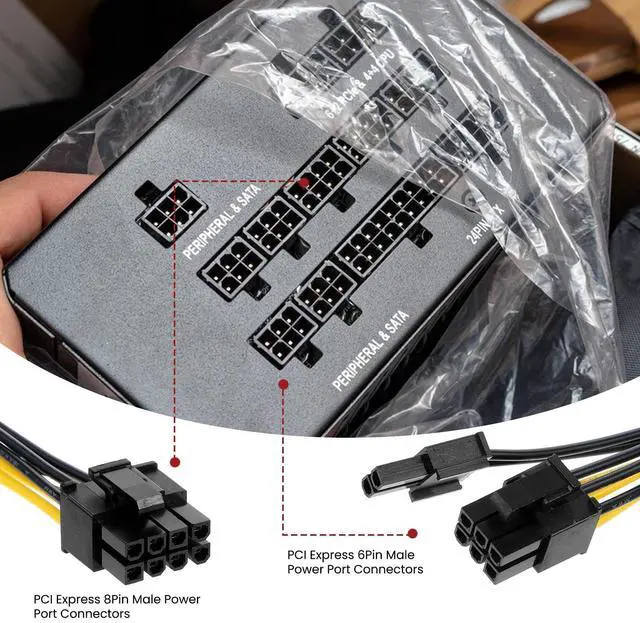 • Use: Dual 6-pin female connectors to the power supply, 8 8-pin male connectors to the GPU for stable power transfer.