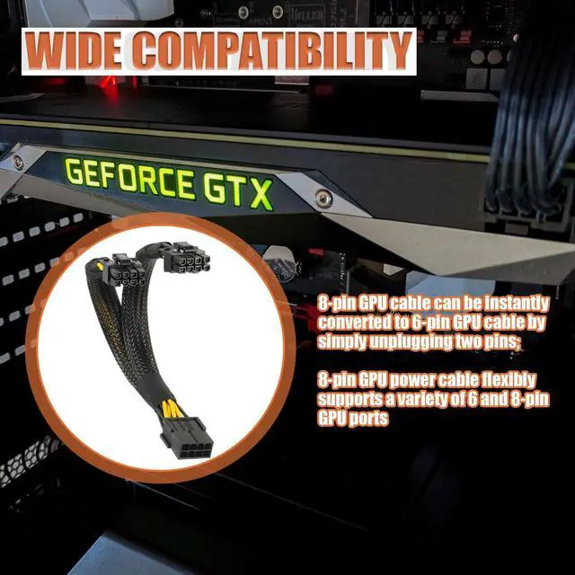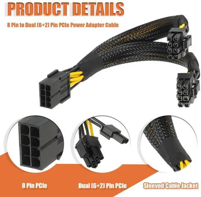 3.8 Pin PCIe Splitter Cable, Compatible with common non modular PSUs and semi-modular PSUs with PCIe 8 pin male cable; (Note: They just dont plug into the PSU directly. You have to have the cable from the PSU for VGA. Then plug in to the VGA end of the cable.)