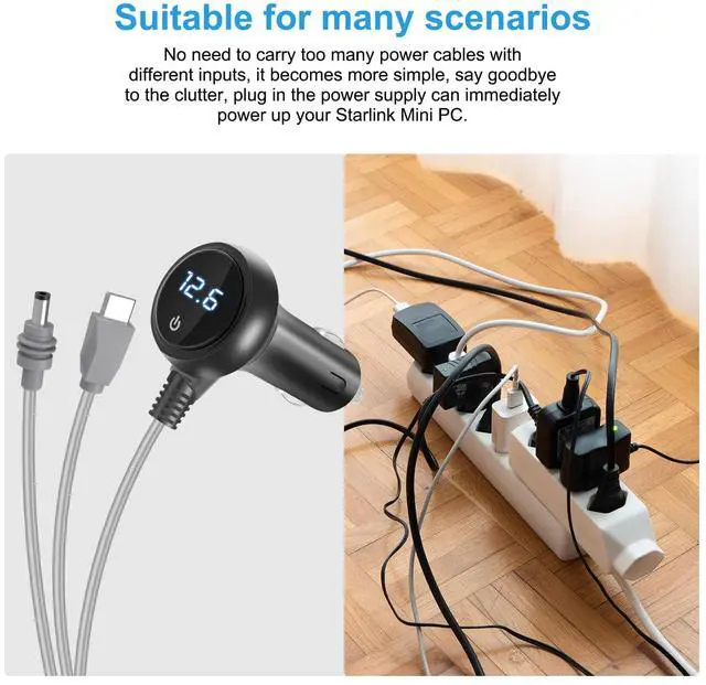 3-in-1 Design: Our Starlink Mini power cord can support DC, USB c and cigarette lighter to DC, so you don't need to carry multiple cables, and avoid buying more cables that will cause a lot of clutter, please note that when using USB C to DC, please make sure that the power output power is 65w