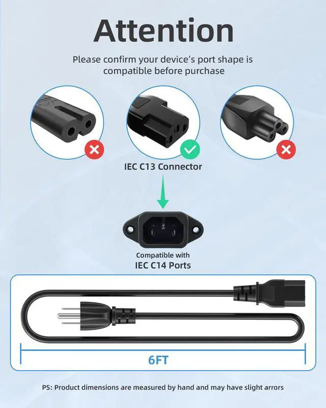 Please read the details carefully and look at the product pictures, make sure that the power cord plug type matches the power port of your electronic device, thank you for your patience, and enjoy your shopping.