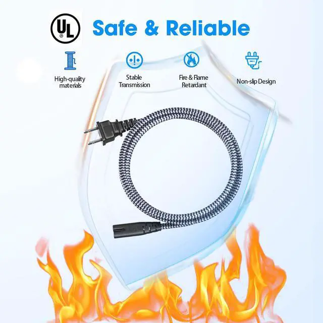 Made of high quality material. The 2 prong power cable is made of pure copper and environmental PVC. The 2 slot power cord provide long-lasting electric power and heat-resistent. Heavy duty 18AWG gauge cord, powerful and safe for power supply.
