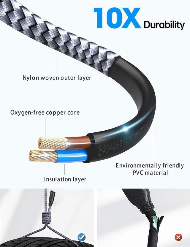 Flexible nylon braided cable body, very durable for daily use. Stable transmission, no flicker and machine heat. Great replacement for your overused or missed power cable, or just get some extra cords for convenience.