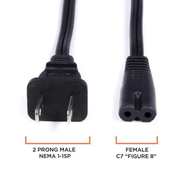 Looking for a figure-8 power cord? Our 2-prong power cable is an excellent replacement for old, damaged, or misplaced power cords.