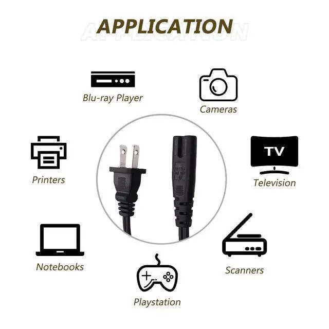 - This power cord can be widely used in printers, notebooks, cameras, scanners and other equipment.