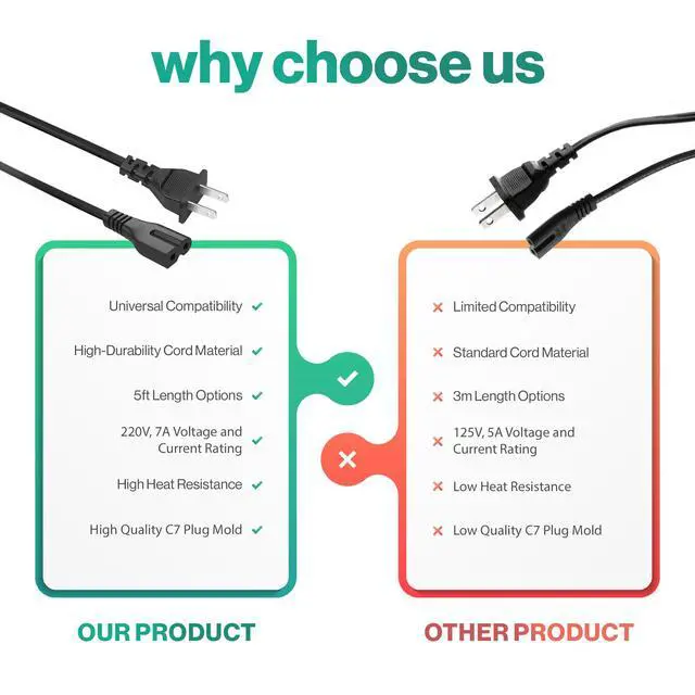 4. General Compatibility for 2-prong polarized devices, it fits various items such as Arris WiFi routers, Sharp, Sanyo, Emerson, Philips, and Sony TVs, as well as Sony PlayStation PS1 PS2 Power cord models, Bose Companion and Acoustimass systems, Numark, JVC, Pioneer stereo receivers, Singer, PFAFF and Brother sewing machines, Vizio soundbars and Vizio TV Power Cord Replacement.