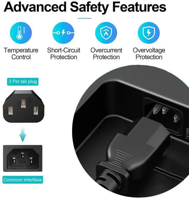 • Safety and Durability 18AWG x 3C Overheating Protection, Overload Protection AC Wall Power Cable Cord Plug. Made With High Quality Materials, Resistant to Bending and High Temperatures, Using More Safety.
