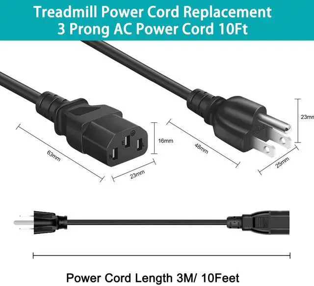 • Power Cord TypeUniversal 3 Prong AC power cord Extra Long 10 Feet 125V 10A 18 AWG (American wire gauge) , 3-pin Shroud female (IEC320 C13 / IEC C13) to 3-prong grounded plug male (NEMA 5-15-P); Color: Black.