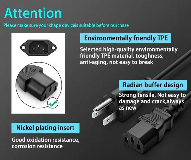 • The 3 Prong AC Wall Power Cord Cable Plug is sold under strict quality control. Please rest assured to purchase. If there is any quality problem or not suitable for you to use, please contact us and we will recommend the correct cable to you.