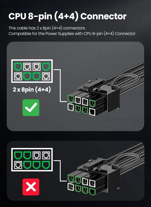 3. This GPU power cable CAN plug in the PSU port directly, and need 2 unoccupied 8-pin(4+4) PCI-e ports on your PSU. Please text us via Message if you have questions about the PSU compatibility before purchasing. Likewise, also e mail us at any time after purchase.