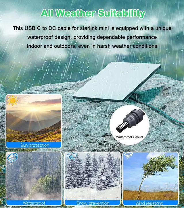 High Waterproof Performance: This starlink mini dc plug(5.5*2.1mm)with SL proprietary waterproof gasket, ensuring reliable performance both indoors and outdoors. High quality PVC waterproof casing to withstand any adverse weather conditions encountered during use. Unrestricted use of space.