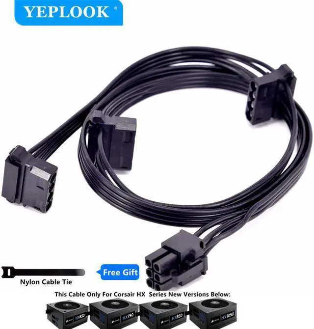 Package list: 1 PCS of PCIe 6Pin Male to 3 IDE Cable, 1 PCS of Free Nylon Cable Tie. For Corsair HX Series Semi Modular PSU New Version HX1050 HX850 HX750 HX650