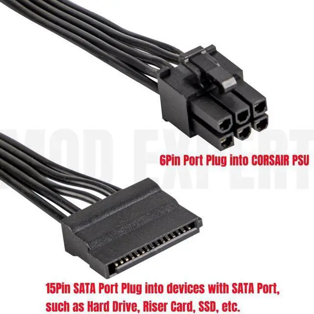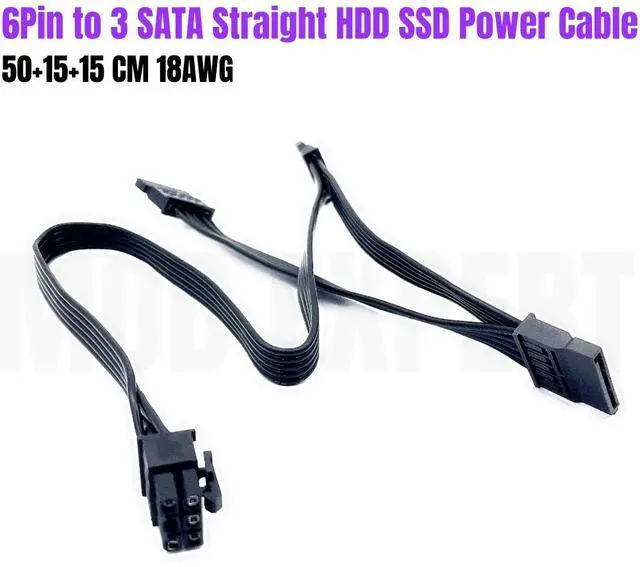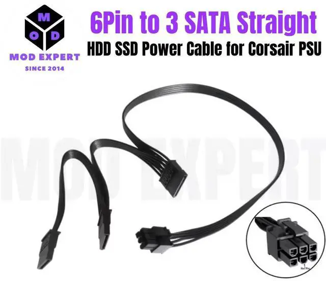 PCIe 6Pin to 3 SATA Straight SSD Power Supply Cable For Corsair HXi Series Full Modular PSU HX750i HX850i HX1000i HX1200i 18AWG 50+15+15cm * Made of high quality plastic material, heat resistant, not easy aging, very durable.