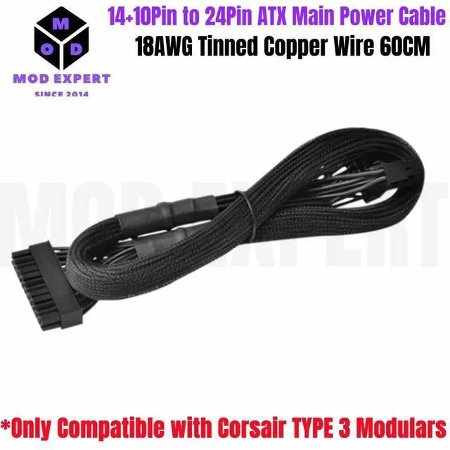 Package Contents: 1 x 14pin+10Pin to 24Pin 20+4Pin Power Supply Cablefor Corsair, 1x Free gift Cable Tie.