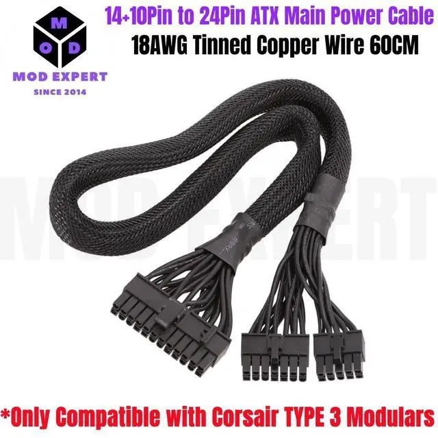 14pin+10Pin to 24Pin 20+4Pin Power Supply Cable Sleeved For Corsair HXi Series Full Modular PSU HX750i HX850i HX1000i HX1200i 60cm