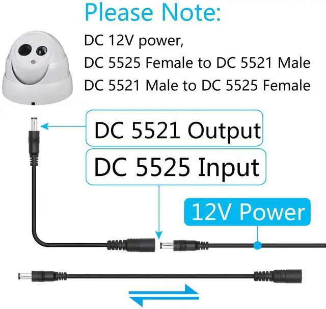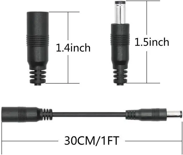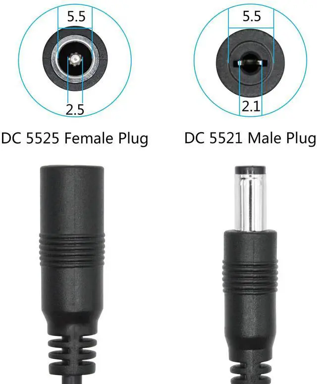 2Pcs DC 5.5mm x 2.5mm Female to DC 5.5mm x 2.1mm Male plug power cord
