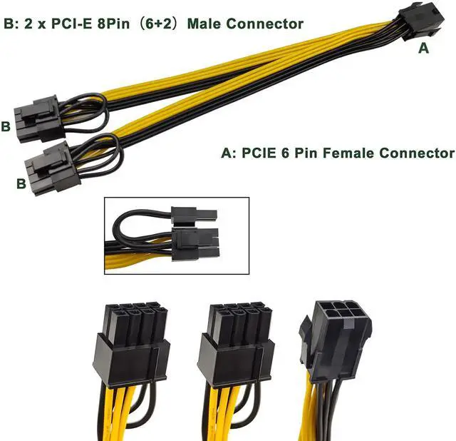 What You Get: 4-Pack PCIE 6 Pin Female to Dual PCIE 8 Pin (6+2) Male Power Supply Extension Cable(9.4inch / 24cm), user manual, 12-month warranty, and our friendly customer service.