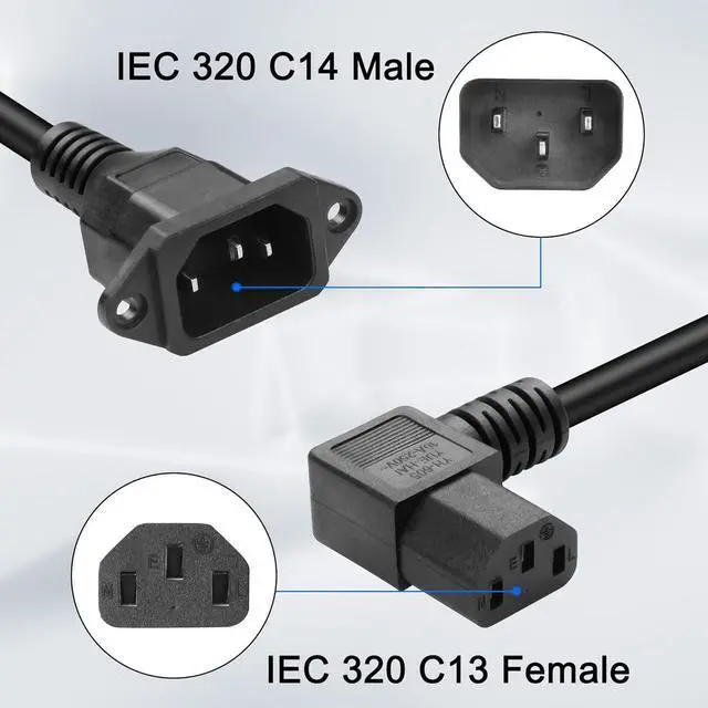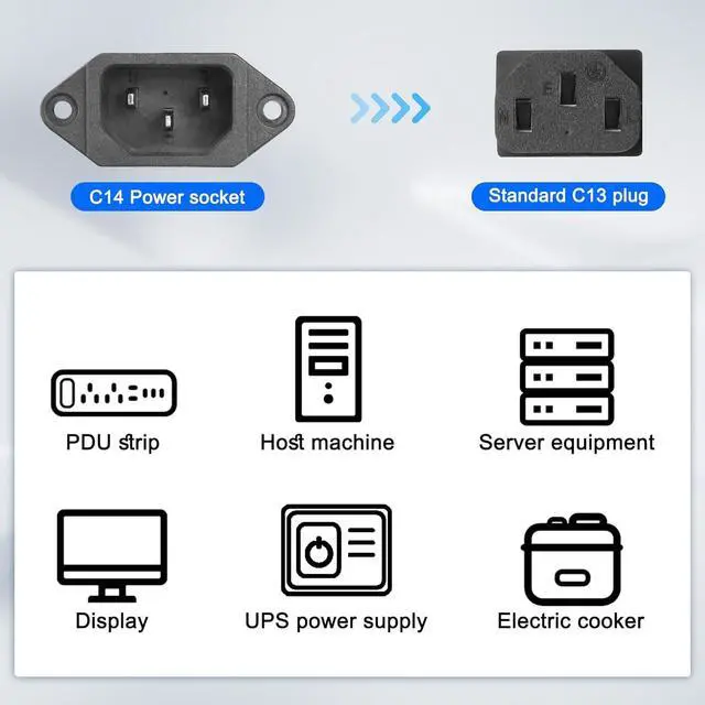 MEIRIYFA C13 to C14 power plug cable can be used to extend the AC power cord, allowing C14 computers or devices to directly connect to the C13 port of a PDU or UPS.