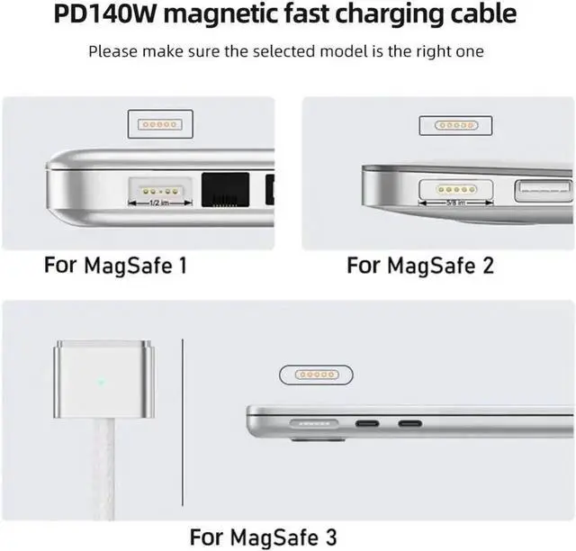 Compatible Model: This USB-C to Magsafe 3 Fast Charging Cable is only compatible for MacBook Pro (14 inch, M22023)/for MacBook Pro (16 inch, M22023)/for MacBook Air (M22022) /for MacBook Pro (14 inch, 2021)/for MacBook Pro (16 inch, 2021), A2779, A2780, A2681, A2442, A2485. Please check if your macbook model is compatible with this USB C magnetic 3-wire.