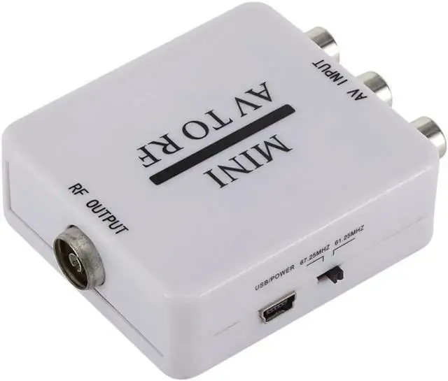 • Mini RCA AV CVSB to RF Video Adapter Converter HD Video Converter Box 67.25/61.25MHz AV To RF Scaler TV Switcher