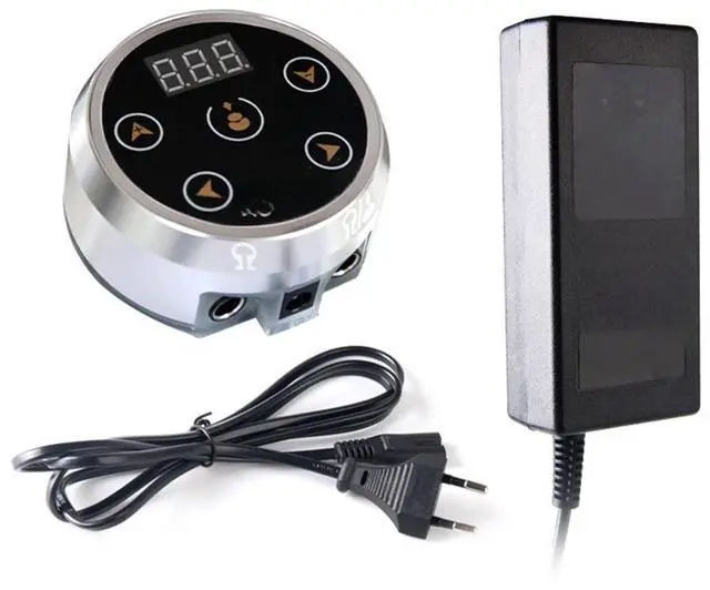 • Power Supply Color Voltage Strip Adapter for Coil and Rotary Tattoo Machines, Silver, European Plug