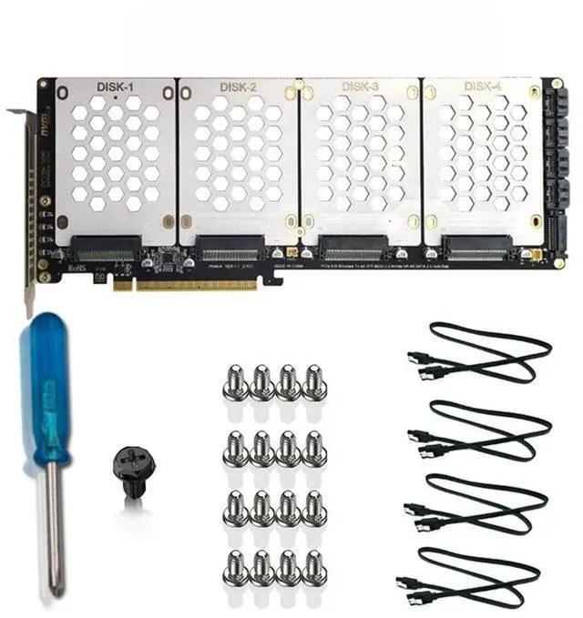 • PH46-4 4-slot SFF8639 U.2 & SATA 2.5-inch hard drive to PCIE4.0 split card PCIE4.0 X16 hard drive adapter card
