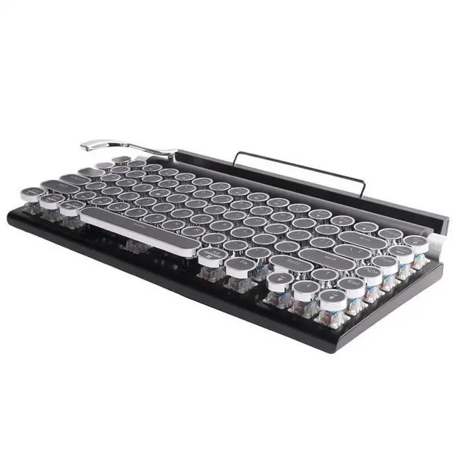 Retro Typewriter Keyboard Wireless Bluetooth Keyboard USB Mechanical Keycaps for Desktop Computer/Laptop/Mobile Phone - Black
