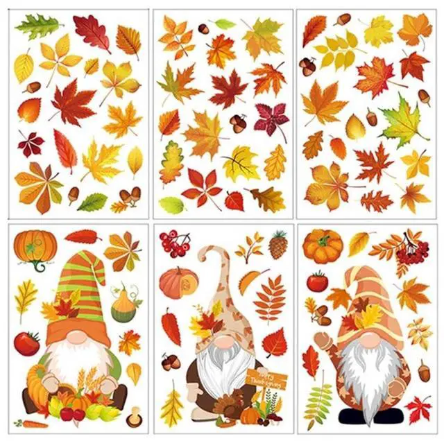 • C6UC 6 Thanksgiving dwarf window sticker autumn pumpkin maple leaf static sticker glass refrigerator sticker