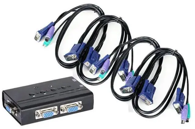 • 4 Port VGA KVM Switch PS//2 Mouse Keyboard Console Manual Button Press Select With Cable High Resolution 460SL