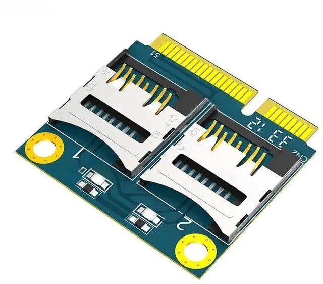 • FOR Mini PCIE to Dual Micro SD TF Card T-Flash Reader Adapter Riser with Metal Extender Bracket Support Half/Full Size for Laptop PC