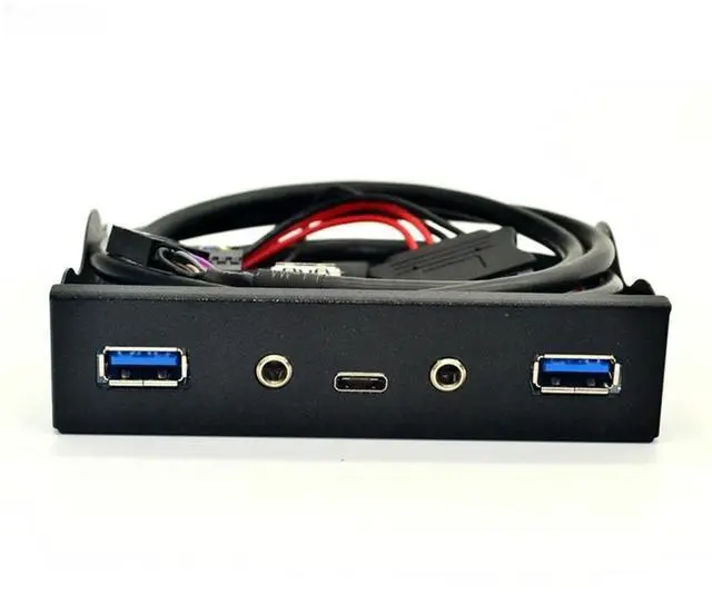 • FOR USB HUB 5 Port USB 3.1 TYPE-C USB 3.0 Front Panel HD Audio 3.5mm Earphone Jack Mic Expansion Adapter for Desktop 3.5" Floppy Bay