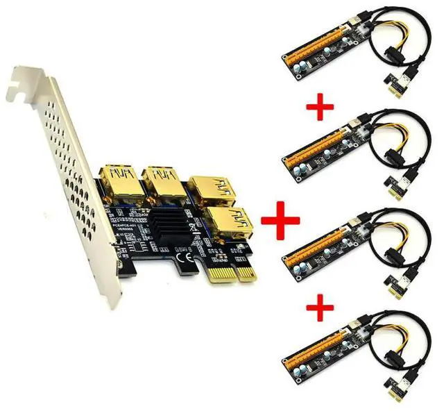 FOR Gold PCI-E Express 1x to 16x Riser Card USB 3.0 Adapter PCIE 1 to 4 Slot PCIe Port Multiplier Card for
