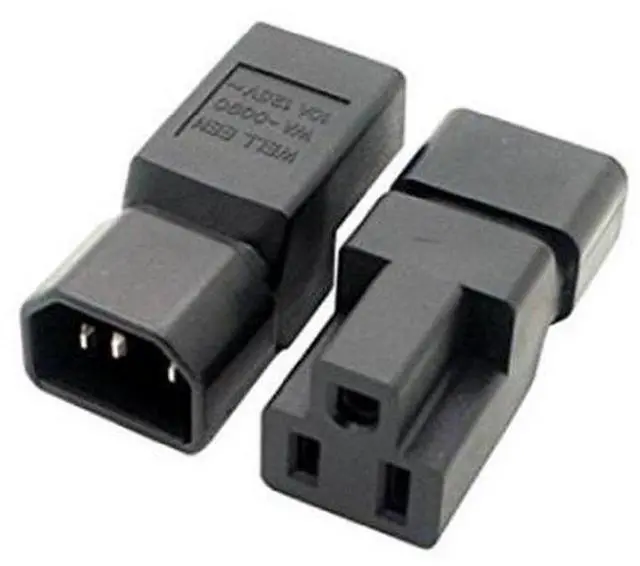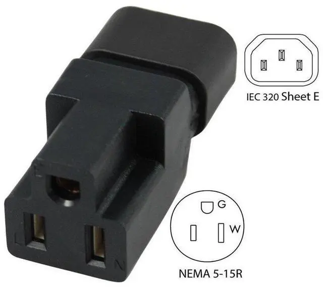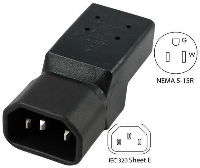 IEC 320 C14 Male to Nema 5-15R female or US 3pin female. Allows a device with 5-15 plug to receive power from a C13 connection.