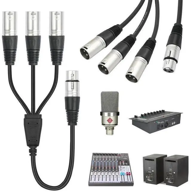 • 3Pin Y Splitter Cable Female To 3 Male Audio Cable Adaptor Foil+Braided Shielded Microphone Cable for Mixer Microphone Amplifier