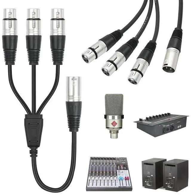 1. 3Pin Audio Cable Adaptor Male To 3 Female Microphone Cable Lightweight Balanced XLR Mic Cord for Mixer Microphone Amplifier