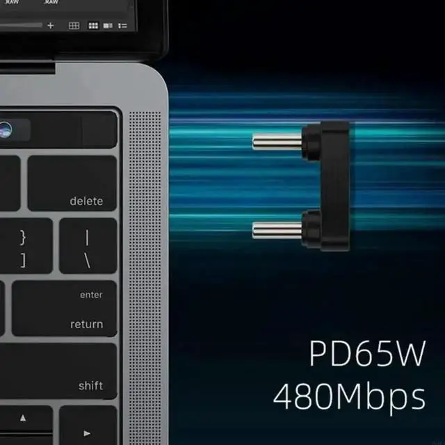 1. Type-C Adapter, 180 Degree Elbow Type C Male to Male U-type Adapter 480Mbps for Laptop Tablet