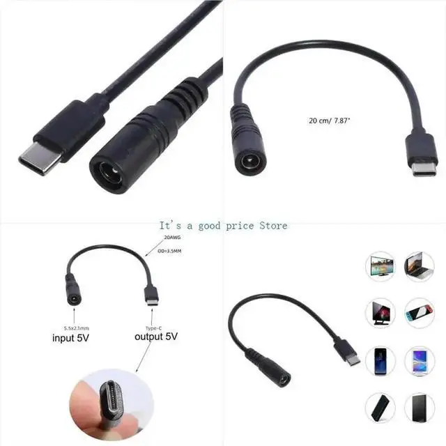1. USB C Male to DC5.5X2.1mm Female Power Extension Cable Charging Cord