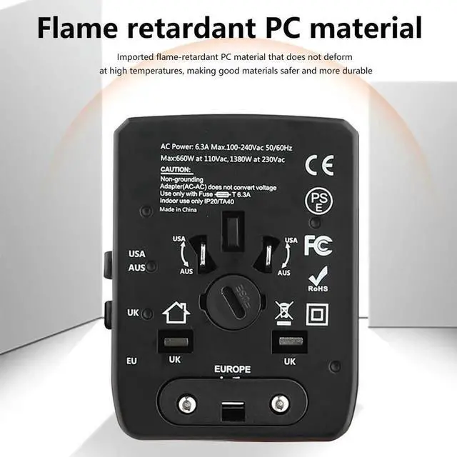 • 3USB 1Type C Ports Universal Travel Adapter 1500W Max International Power Adapter Wall Charger Multifunctional Power Adapter