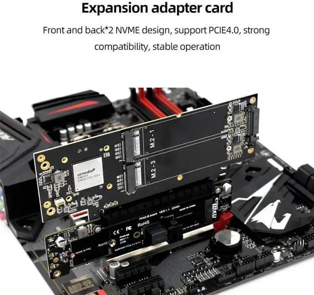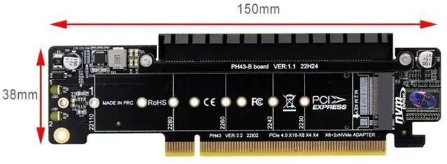1. PCIe X16 To X8+X4+X4 Splitter Card Adaptor M.2 NVMEx2 Input Ports Adapter Card Expansion Card Support 2280/2260/2242/2230 SSD