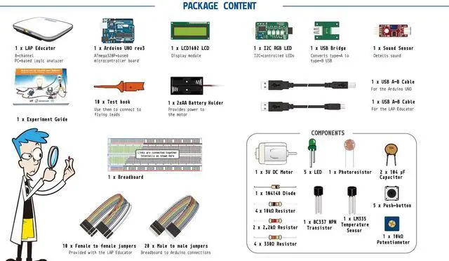 Zeroplus LAP Educator Kit is a comprehensive educational set designed for aspiring engineers and students eager to master Zeroplus Logic Analysis and Arduino programming.