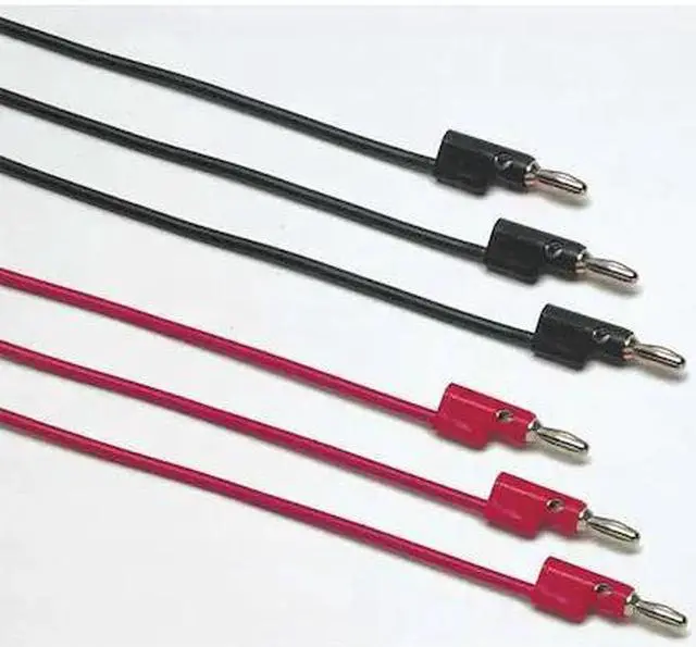 Banana Plug to Banana Plug Test Lead Set, Length 24 In, 36 In 48 In, Red, Black, PVC Insulation Type, Max Amps 15, Max Voltage 30 V RMS or 60 VDC, Wire Gauge 18, Plug and Connector Description Stackable 4mm Banana Plugs, Includes (1) Set (Red and Black) 24 In Leads, (1) Set (Red and Black) 36 In Leads and (1) Set (Red and Black) 48 In Leads. This item has been restricted from sale in the following state (s): []