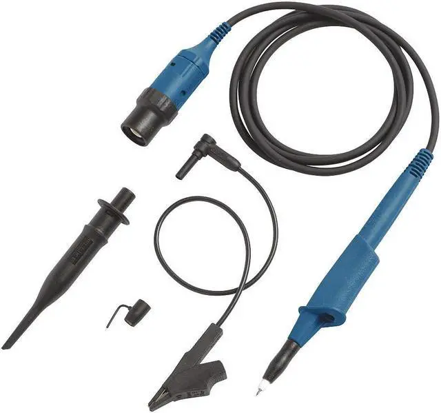 Voltage Probe, Bandwidth (MHz) 500 MHz, Probe Ratio 10:1, Cable Length (Meters) 1.2 m, Input Impedance (Ohms) 10 M, Capacitance (pF) 12, Approx. Rise Time (ns) 3 nsec, Max. Voltage 1000V CAT III; 600V CAT IV, Compensation Range (pF) 10 to 22, Safety Rating 1000 V CAT III / 600 V CAT IV, Color Blue, Includes Black Ground Lead with Mini Alligator Clip, Black Hook Clip, Ground Spring, Insulation Sleeve, Manufacturers Warranty Length 1 yr. This item has been restricted from sale in the following state (s): []