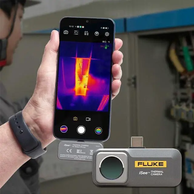 Experience fast and easy inspections on the go with Fluke iSee Mobile Thermal Camera, weighing just 22g. It takes only a second to start using. The wide temperature measurement range, up to 550°C (1022°F), makes it suitable for various applications, including inspecting electrical cabinets, identifying HVAC issues, and installing underfloor heating. Fluke iSee boasts professional-grade image quality, comparable to high-end thermal cameras, with a 256 x 192 pixel thermal resolution and smooth video recording at a 25 Hz frame rate. Additionally, our software offers comprehensive spot, line, and area temperature analysis for precise diagnostics.