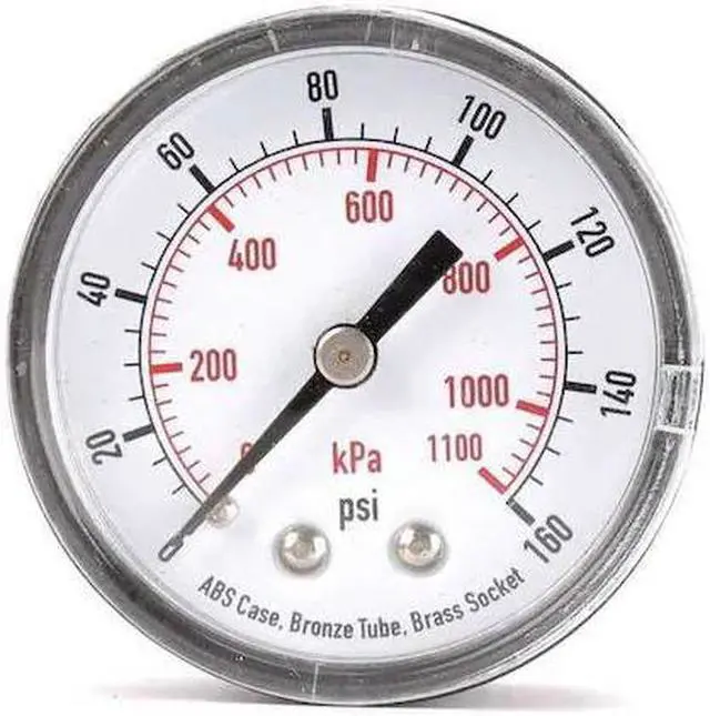 ZORO SELECT 4FMC7 Pressure Gauge, Commercial, 0 to 160 psi, 2 in Dial, Acrylic