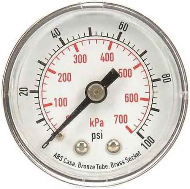 California Proposition 65: This product contains a chemical known to the State of California to cause birth defects or other reproductive harm. Commercial Pressure Gauge, Nominal Dial Size 1 1/2 in, Accuracy +/-3-2-3 Percent, Gauge Case Material ABS Plastic, Process Connection Type NPT, Process Connection Gender Male, Lens Material Acrylic, Process Connection Size 1/8 in, Field Fillable No, Process Connection Location Center Back, Case Color Black, IP/NEMA Rating Not Rated, Primary Pressure Range 0 to 100, Dry Dampening Feature None, Vibration Resistance None, Dial Color White, Pressure Gauge Type Commercial Pressure Gauge. This item has been restricted from sale in the following state (s): []