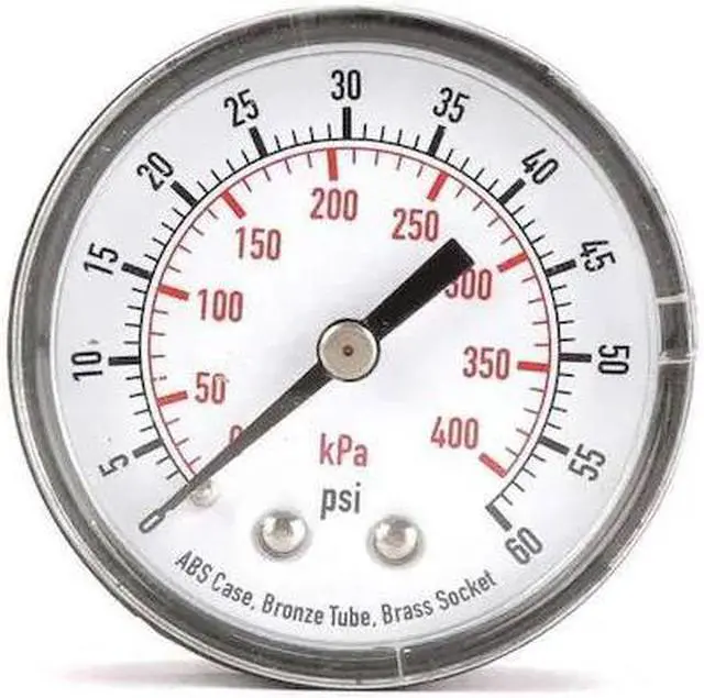 California Proposition 65: This product contains a chemical known to the State of California to cause birth defects or other reproductive harm. Commercial Pressure Gauge, Accuracy +/-3-2-3 Percent, Gauge Case Material ABS Plastic, Nominal Dial Size 2 in, Lens Material Acrylic, IP/NEMA Rating Not Rated, Hazardous Location Rating Not Rated, Sensor Material Bronze, Socket Material Brass, Process Connection Type NPT, Process Connection Gender Male, Process Connection Location Center Back, Process Connection Size 1/4 in, Panel-Mountable No, Pressure Gauge Type General Purpose Dial Pressure Gauge. This item has been restricted from sale in the following state (s): []