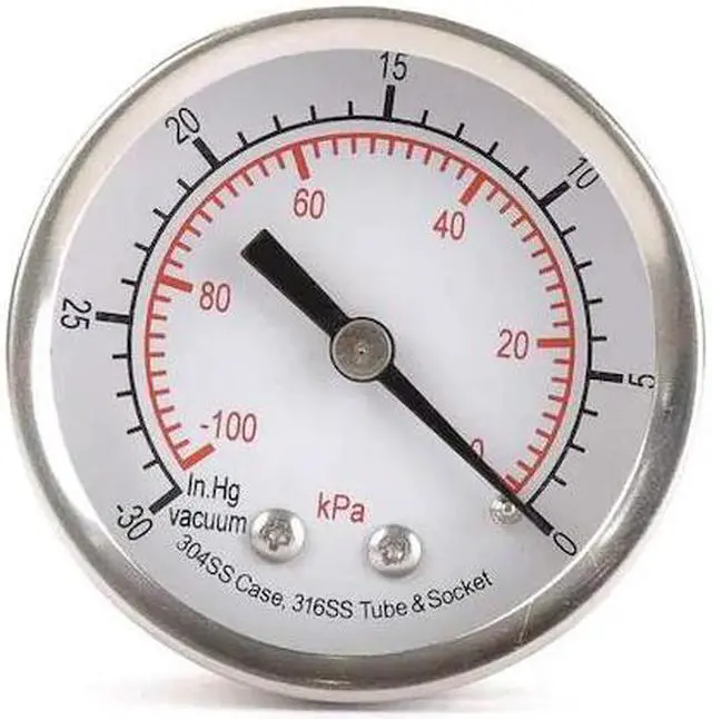 California Proposition 65: This product contains a chemical known to the State of California to cause birth defects or other reproductive harm. Commercial Vacuum Gauge, Accuracy +/-3-2-3 Percent, Gauge Case Material 304 Stainless Steel, Nominal Dial Size 2 in, Lens Material Acrylic, IP/NEMA Rating Not Rated, Hazardous Location Rating Not Rated, Sensor Material 316 Stainless Steel, Socket Material 316 Stainless Steel, Process Connection Type NPT, Process Connection Gender Male, Process Connection Location Center Back, Process Connection Size 1/4 in, Panel-Mountable No, Pressure Gauge Type General Purpose Dial Pressure Gauge. This item has been restricted from sale in the following state (s): []