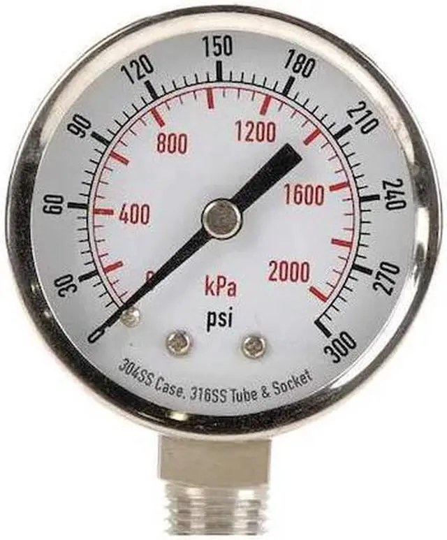 California Proposition 65: This product contains a chemical known to the State of California to cause birth defects or other reproductive harm. Commercial Pressure Gauge, Nominal Dial Size 2 in, Accuracy +/-3-2-3 Percent, Gauge Case Material 304 Stainless Steel, Process Connection Type NPT, Process Connection Gender Male, Lens Material Acrylic, Process Connection Size 1/4 in, Field Fillable No, Process Connection Location Bottom, Case Color Silver, IP/NEMA Rating Not Rated, Primary Pressure Range 0 to 60, Dry Dampening Feature None, Vibration Resistance Liquid-Filled, Dial Color White, Pressure Gauge Type Commercial Pressure Gauge. This item has been restricted from sale in the following state (s): []